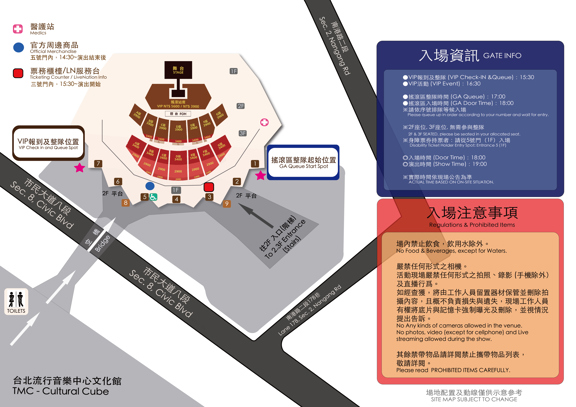 * FOR VIP, please queue up in order according to your serial number and wait for entry. If you do not line up within the announced time and entry, you will forfeit your priority and have to follow the on-site staff's instructions to enter. The promoter reserves the right to deny entry to those who fail to check in on time.